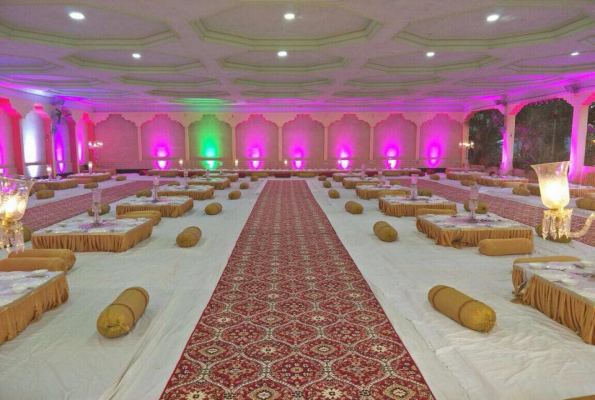 Yes, corporate events, parties and other functions with guests ranging from 300 to 800 can be hosted at Surabhi Gardens.