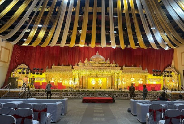 Hall can accommodate 500 - 1200 guest(s). Veg Menu starting price of Hall is Rs. 650 per plate. and Non Veg Menu starting price of Hall is Rs. 750 per plate.