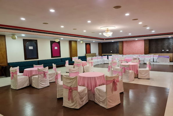 Banquet Hall can accommodate 140 - 250 guest(s) Veg Menu starting price of Banquet Hall is Rs. 600 per plate.