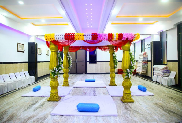 Hall can accommodate 120 - 220 guest(s). Veg Menu starting price of Hall is Rs. 650 per plate. and Non Veg Menu starting price of Hall is Rs. 850 per plate.