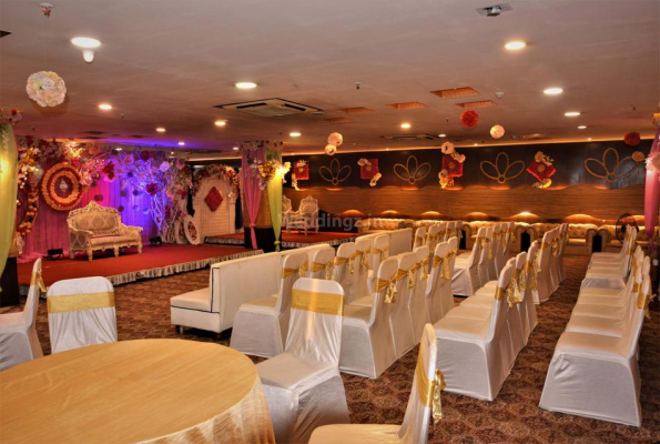 Hall can accommodate 500 guest(s) Veg Menu starting price of Hall is Rs. 800 per plate.