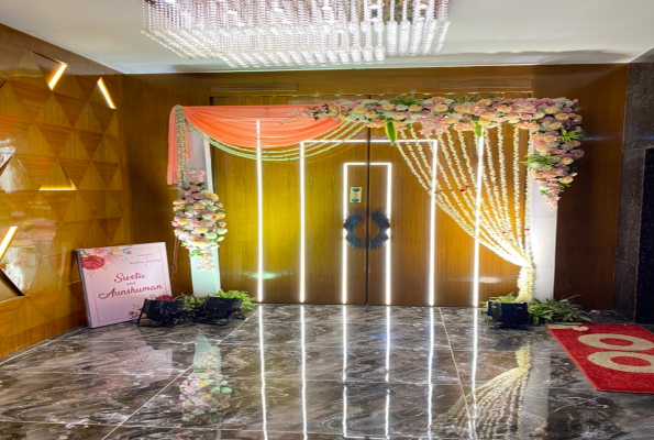 Hall can accommodate 25 - 300 guest(s) Veg Menu starting price of Hall is Rs. 1500 per plate. and Non Veg Menu starting price of Hall is Rs. 1600 per plate.