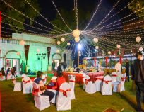 Lawn can accommodate 150 - 450 guest(s) Veg Menu starting price of Lawn is Rs. 950 per plate. and Non Veg Menu starting price of Lawn is Rs. 1250 per plate.