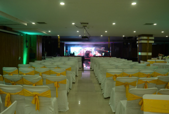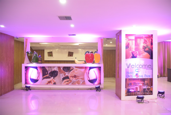 De Global Park can accommodate 150 guest(s) Veg Menu starting price of De Global Park is Rs. 650 per plate. and Non Veg Menu starting price of De Global Park is Rs. 750 per plate.
