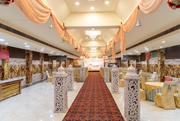 Banquet Hall can accommodate 80 - 250 guest(s). Veg Menu starting price of Banquet Hall is Rs. 900 per plate. and Non Veg Menu starting price of Banquet Hall is Rs. 1100 per plate.