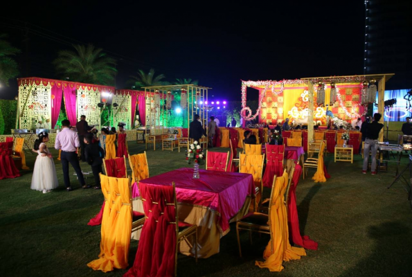 Lawn can accommodate 400 guest(s). Veg Menu starting price of Lawn is Rs. 1000 per plate.