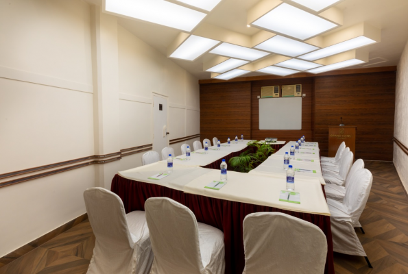 Conference Room can accommodate 12 - 18 guest(s) Veg Menu starting price of Conference Room is Rs. 1250 per plate. and Non Veg Menu starting price of Conference Room is Rs. 1500 per plate.