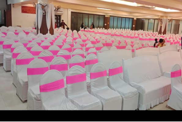 Yes, corporate events, parties and other functions with guests ranging from 250 to 1500 can be hosted at Mewad Kesari Bhawan.