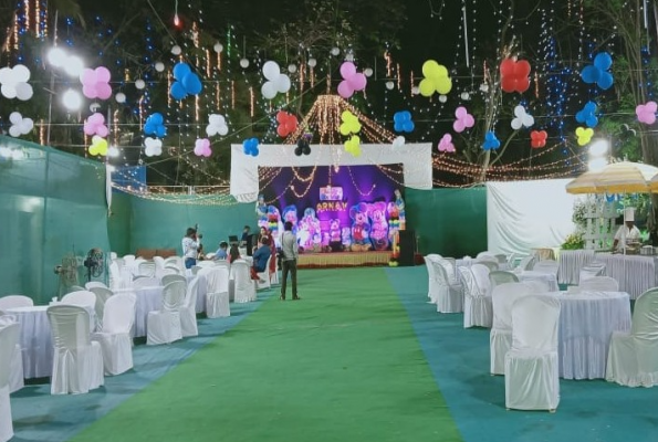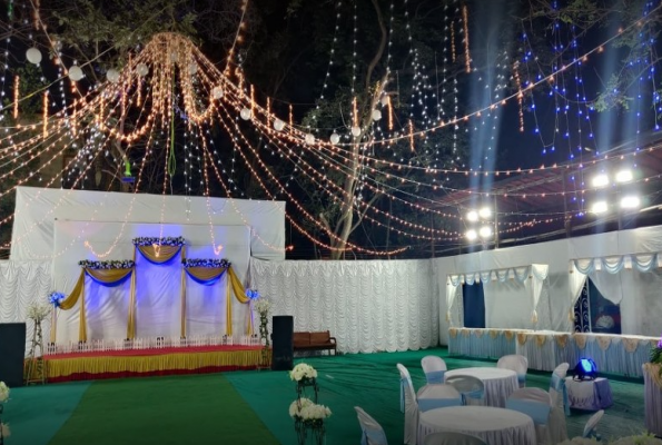 Yes, corporate events, parties and other functions with guests ranging from 150 to 400 can be hosted at Takshvi Lawn.