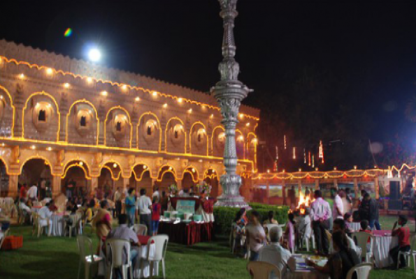 Rains never obstruct the events at the lawns as the hall is attached to the kitchen hence, the party can be shifted indoor in Yash palace. Yash palace is a fiber glass structure of 150 ft long 30 ft wide and 30 ft tall. It has 15 arches and 15 jharokhas in the typical rajasthani architecture giving a royal elegance.