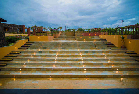 Whether you are planning a romantic engagement, a musical sangeet, a vibrant wedding ceremony, or an elegant evening reception, the amphitheatre provides a stunning stage beneath the open sky. The natural slope of the venue ensures clear views for every guest, while the panoramic landscape enhances the experience with a serene and majestic backdrop. As the sun sets over the mountains and the venue comes alive under the stars.