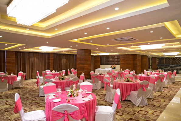 Yes, weddings and other functions with guests ranging from 100 to 200 can be hosted at The Regenta Central. 80 rooms are available at the venue with a provision to arrange more at nearby properties.