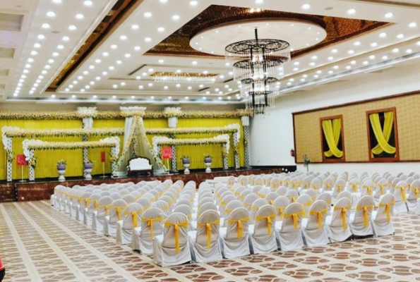 Hall can accommodate 600 - 900 guest(s) Veg Menu starting price of Hall is Rs. 500 per plate. and Non Veg Menu starting price of Hall is Rs. 600 per plate.