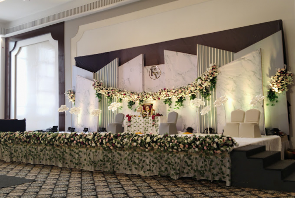 Banquet Hall can accommodate 100 - 600 guest(s) Veg Menu starting price of Banquet Hall is Rs. 1000 per plate. and Non Veg Menu starting price of Banquet Hall is Rs. 1000 per plate.