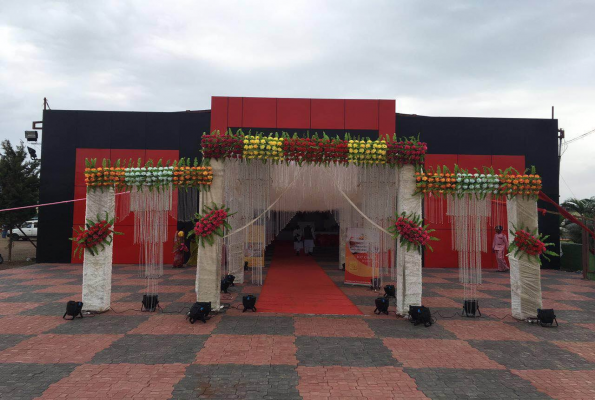 Yes, corporate events, parties and other functions with guests ranging from 100 to 2250 can be hosted at Madhura Lawns.