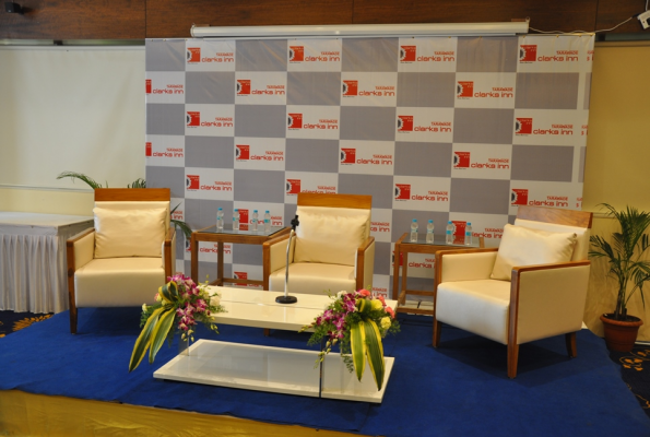 Yes, corporate events, parties and other functions with guests ranging from to 175 can be hosted at Tarawade Clarks Inn.