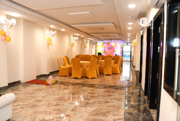 Banquet Hall can accommodate 50 - 150 guest(s). Veg Menu starting price of Banquet Hall is Rs. 1000 per plate. and Non Veg Menu starting price of Banquet Hall is Rs. 1000 per plate.